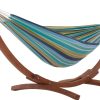The eye-catching solid wood frame sets this Double Cotton Hammock with Solid Pine Stand apart from the crowd. It is a natural choice for a rugged design aesthetic or will compliment an immaculately manicured space. The stand provides durability and the densely woven double cotton hammock comes in the spectacular Vivere colours that you’ve grown to love. A solid, neutral pattern option keeps your space classic.